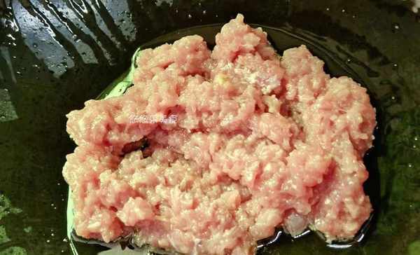 8.如下图,将锅中的肉泥炒至成下图这种发白的状态;