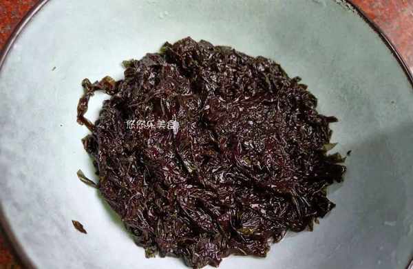 3.准备一小块的紫菜片,将它放在盘中,加入适量的水。用水将紫菜泡发,清洗紫菜可以用小漏勺,这样防止紫菜都掉了。以前买回来的紫菜会有很多沙子没有清洗很影响口感。不过现在我们在煮之前洗洗,去掉表面的灰尘;