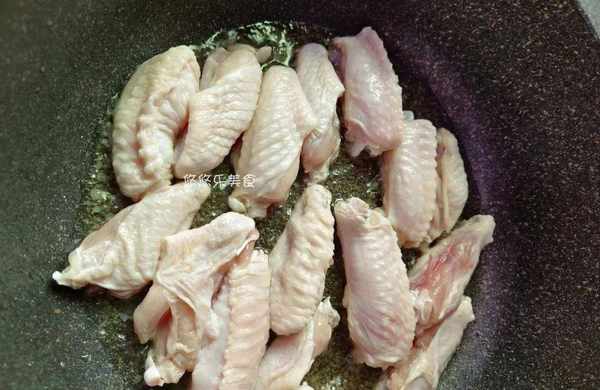 5.准备一个干净的锅,锅中的水分干后,倒入适量的油。将腌好的鸡中翅放在锅中煎,放入锅后,整齐摆放好。摆放好后,再煎煮时,两面受热均匀;