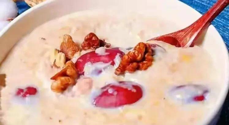 食材:牛奶、燕麦、鸡蛋、核桃、红枣