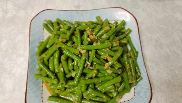 食材:豆角,芝麻酱,大蒜生抽,香油,盐,鸡粉,白糖