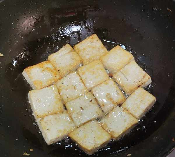 1、把鸭血,豆腐都切成均匀的块备用,2、起锅烧水把鸭血焯水备用,然后把豆腐煎至两面金黄