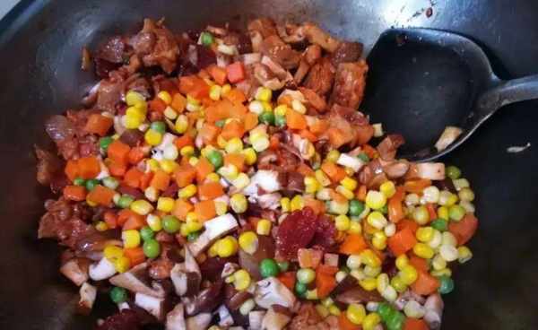 做法:1、先把玉米、胡萝卜、香菇、青豌豆清洗干净,再把玉米颗粒剥下来放入水中多清洗几遍,把玉米里面的须清洗干净,捞出沥干水分,胡萝卜切成大小均匀的小丁状,香菇也是切成跟玉米大小差不多的丁状备用。