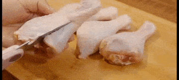 准备4个鸡腿,从中间切开,把它去骨,用刀轻轻地拍打一下鸡肉,拍打鸡肉煎的时候就不会收缩得厉害了。