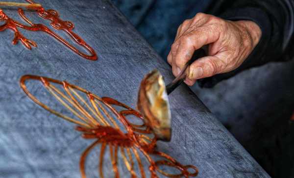 76、糖画,以前为了看卖糖画的人画各种各样的画,放学了不肯回家,回晚了被老妈追着打
