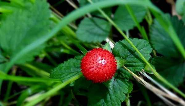 5、河滩上很多蛇梅。蛇莓我们小时候叫蛇泡,清香可口。我们叫野草莓,