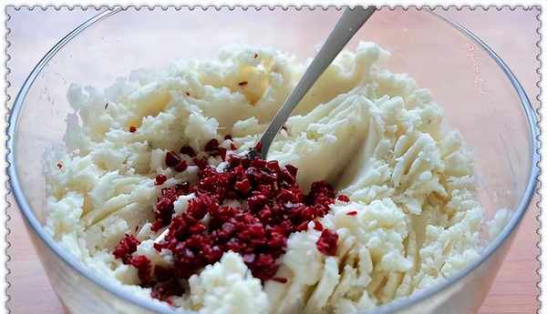 (4)加入一把蔓越莓干,然后充分搅拌一下。