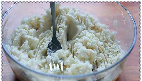 (3)正好之后转到一个大碗中,尽量不要将水倒进去,然后用叉子或者勺子压成碎泥备用。