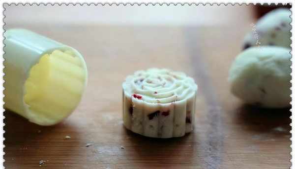 (8)取出造型模具,将准备好的小团子按进去,如果很黏的话,可以撒上一层熟糯米粉,就好了。