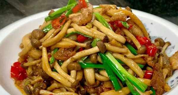 食材:白玉菇、五花肉、红辣椒、大蒜、香葱、大葱
