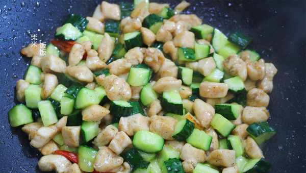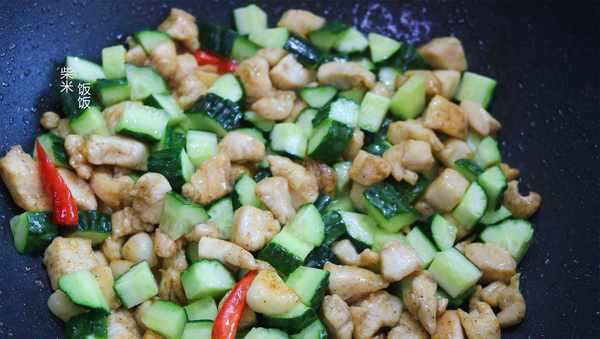 4,这道菜全程需要旺火快炒,保证鸡肉的软美口感和黄瓜的脆美多汁。