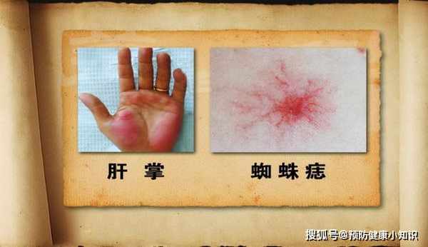 通常有些肝硬化患者的肩膀、胸部、手背、面部等其他身體地方會出現一些擴張的小動脈,周圍有向外放射的細小分支,看起來就像是一隻小小的蜘蛛,呈現出鮮紅色。< /p>
