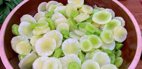 2、把莴笋片整齐摆好,端到室外晾晒,夏天太阳强烈,一般3天左右就能晒干。需要注意的是,三月天,孩儿的脸,说变就变。有时候大晴天突然就下雨了,所以一定要支持天气情况,避开雨天再晾晒干菜,不然晒到一半,遇到下雨天,可能会导致没晾干的蔬菜发霉。