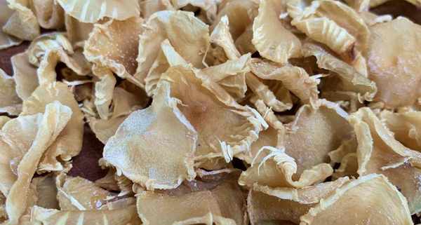 3、晾晒的过程记得翻个面,这样晒得又快又均匀,三天的时间,大大的莴笋片就变成了迷你版的莴笋干,别看30斤莴笋很多,晒干后最多有3斤,水分蒸发后剩不了多少。莴笋干的口感保留了莴笋的清香,吃起来特别筋道,总之就是比新鲜的好吃太多,气质真绝了。迫不及待地做了盘清炒莴笋干,超级下饭,做法如下。