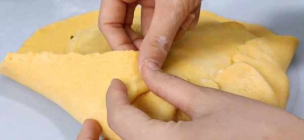 11.接着把边缘多余的地方捏合起来。捏严实一点。