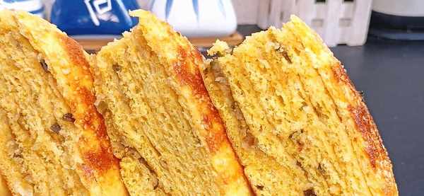 这次要分享的玉米面做法就是发面做法,层次非常丰富,夹层里面是葱香浓郁的葱油酥。葱香可以刺激食欲,让自己更有胃口。发面食物的特点就是吃着好消化易吸收。这个天气最适合不过吃这道美食了。口味咸口的,吃着蓬松选择,有点粗粮,因为加了粗粮的原因,营养价值跟高,吃着比包子还好吃。