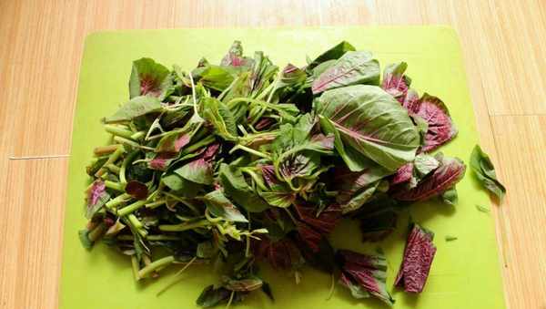 1、选购适量易折断、根须较少的红苋菜,这样的红苋菜口感更脆、更美。