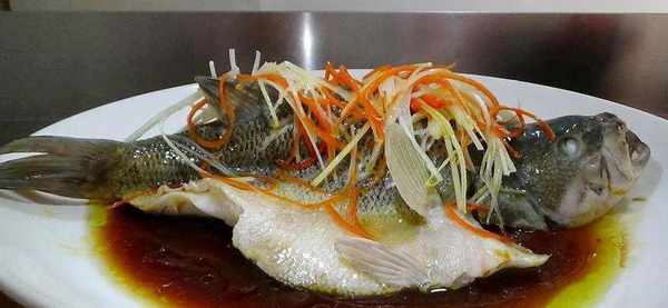 3.然后再淋上一圈蒸鱼豉油,上面浇上一层热油就可以出锅食用啦。用这个方法做出来的清蒸鲈鱼,鲜美可口不腥还不柴。