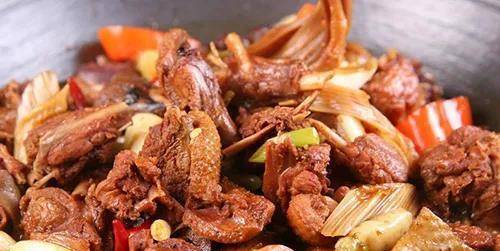 2.炒锅烧热放入食用油,油热后把沥干水分的鸭肉加进来。用大火煸炒出香味。把里面多余的油脂煸炒出来,煸炒至鸭肉焦黄。然后在里面加入八角、桂皮、生抽、老抽、白砂糖,然后再倒入一瓶纯粮食啤酒。