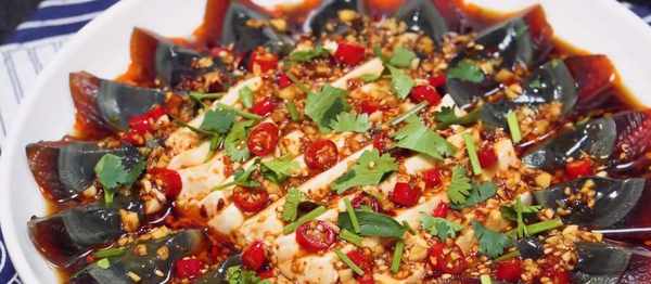 食材准备:皮蛋、豆腐、香菜、小米辣。