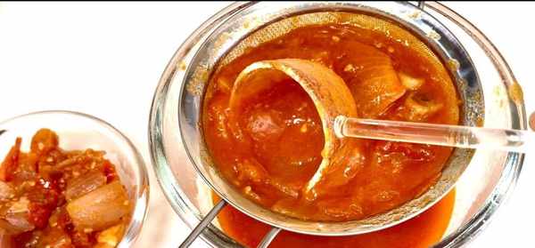 全部完成之后,关火,用漏勺把番茄皮、洋葱大蒜过滤出来,剩下的就是番茄浓汤了。如果喜欢气质更重一点的话,可以直接用搅拌器完全搅碎,那就完全没有浪费了!