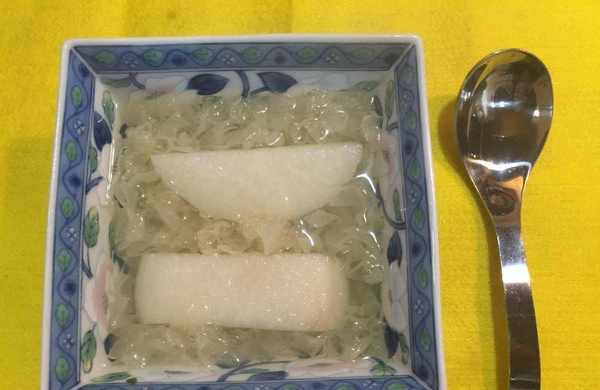 材料:雪梨1个,冰糖20g,银耳半朵。