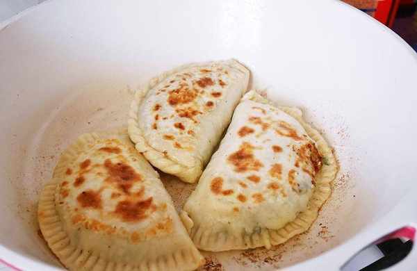 5、起锅烧油,开小火,下入韭菜盒子,煎至两面金黄,出锅,即可食用。