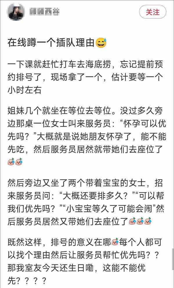 网友称在海底捞等位时发现孕妇插队