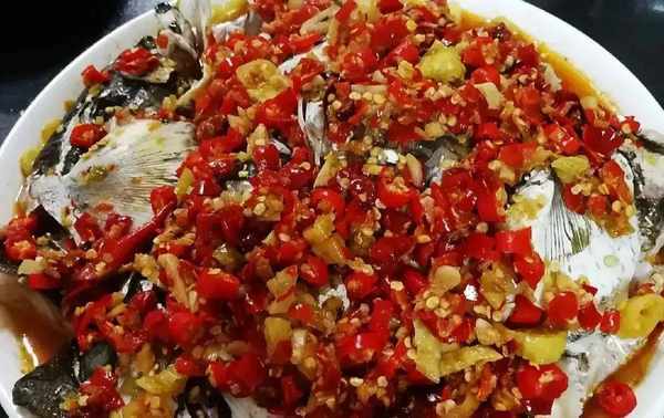 剁椒鱼头在每个城市都有不同的做法,以前在上海的一家餐馆吃的剁椒鱼头用的肉椒来做的,只有香味,并没有辣味,只能品尝鱼肉的鲜美,而妈妈做的这道剁椒鱼头用的都是一些小米辣,小米辣经过姜蒜以及调料搭配炒出来,均匀的淋在鱼头上,上锅蒸制以后再淋上一勺热油,顿时香气四溢,鱼肉不仅鲜美,还有口味上的满足,小伙倒是吃得津津有味,但是女孩只能吃几口里面的肉。