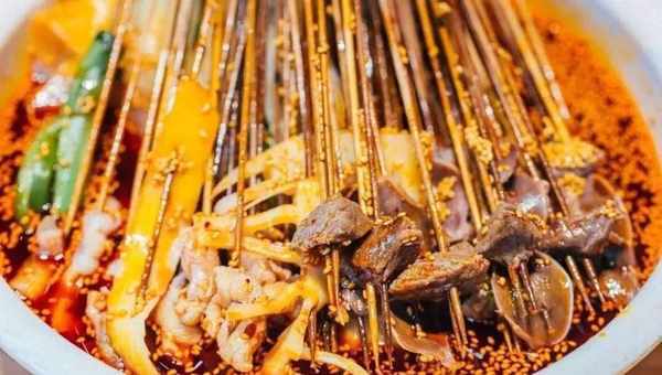 钵钵鸡,这名字也是很神奇,如果不是四川的朋友可能不知道钵钵鸡是什么意思,钵钵是瓦罐的意思,钵钵鸡就是用瓦罐当做容器来装鸡肉。类似于串串香,又不同于串串香,相同点是要用竹签串起来,钵钵鸡是冷菜,但是串串香是热菜。1991年钵钵鸡已经被列为真正意义上的“名小吃”了。