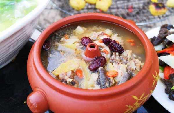 烹饪汽锅鸡的时候,汽锅下放一盛满水的汤锅,然后把鸡块放人汽锅内,纯由蒸汽将鸡蒸熟的,能最大程度地保留了鸡肉的原汁原味,入口肉质细腻,汤清淡鲜亮,深受饕餮者的喜爱,如果你去云南游玩,不尝尝当地的汽锅鸡,那绝对是味蕾的一大损失哦!