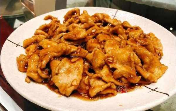 取上等猪里脊肉,切成1厘米厚的薄片,加入酱油腌制,依次放入蛋清、淀粉抓匀后,再放入油中划熟,令起炉灶,加入葱姜蒜爆锅,再添加传统的配料,最后将划熟的肉放入锅中大火烤汁。