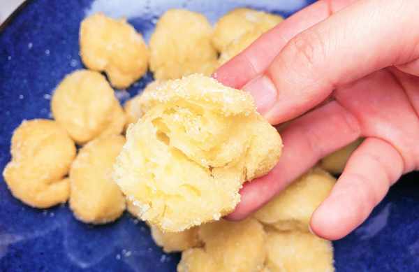 7、至此,这份广州名点糖沙翁就做好啦,入口蛋香浓郁,绵软香甜,一点都不腻人,比泡芙还好吃,特别适合那些爱吃甜点的朋友。