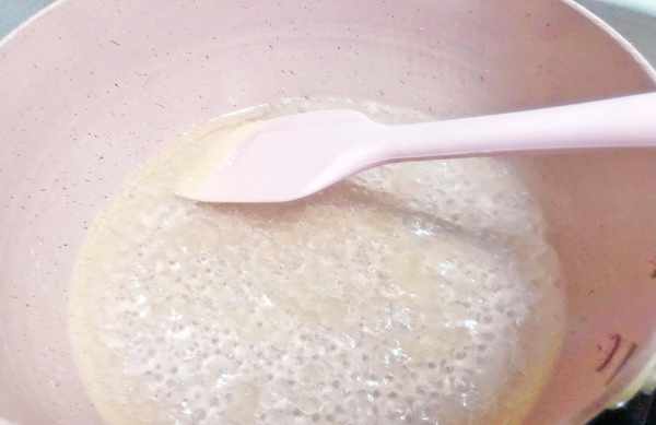 1、先在锅中下入15g猪油和180g水,然后再把水煮开,将猪油搅拌至融化后关火。