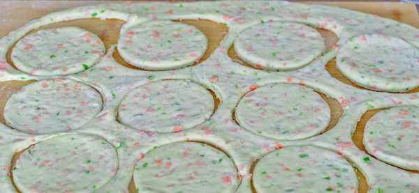 8、继续搅拌均匀就可以了,双手抹油防粘,取一小块先搓圆,再压成小饼。