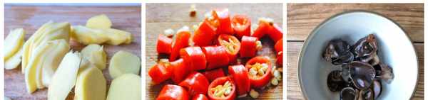 2、准备生姜片、小米椒切圈、木耳泡发洗净然后焯水备用;