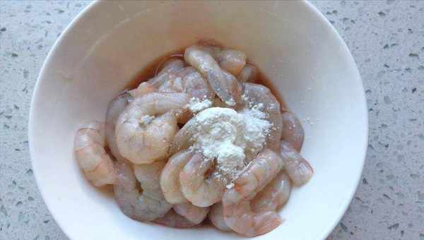 1、虾仁去除虾线后洗净沥干水分,然后加盐、料酒、生粉、柠檬汁拌匀后放入冰箱冷藏2小时;