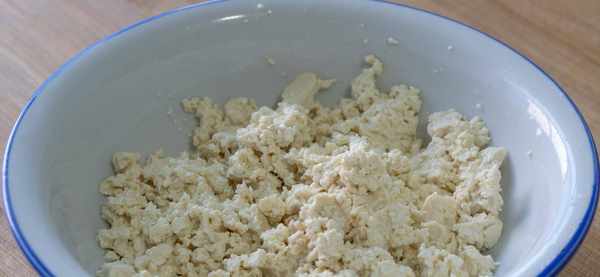 6、豆腐泡好后拿起来放入大碗里,直接上手捏碎。