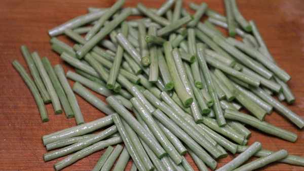 临走前,妈妈往车后备箱塞了一大把豇豆,说是今年豇豆大丰收,他们二老在家也没什么胃口,就这样我们把这一大把豇豆带回了家。在乡下,人们将吃不完的豇豆焯水后晾晒得到干货,可以吃半年都不新。记得每年中秋的时候,妈妈都会用干豇豆烧肉,那滋味别提有多香了。
