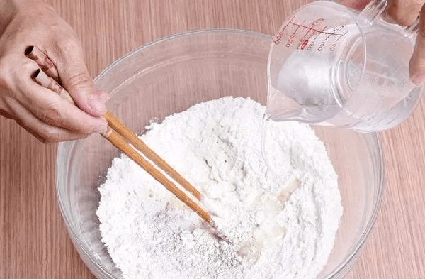 (这可是和面时的关键步骤,一定要将其掌握好)面粉的比例和清水的比例为2:1,这是和面时的最佳比例,清水放太多或者放太少的话,对蒸出来的包子的影响会非常的大。