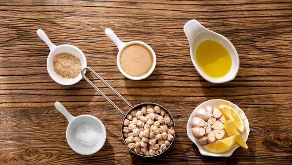 煮熟的鹰嘴豆,加上生蒜、芝麻酱、柠檬汁和海盐,捣打成泥,就是基础版鹰嘴豆泥。
