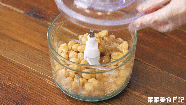 3.煮好的鹰嘴豆,加入半头熟蒜、2大勺芝麻酱、1小勺柠檬汁、1小勺盐、1小勺孜然烧烤粉、1大勺橄榄油搅打,分次加入3-6大勺煮鹰嘴豆的水,搅打顺滑