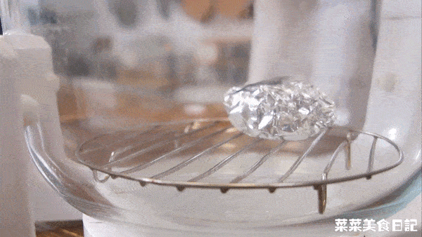 2.大蒜顶部切掉,漏出蒜瓣,淋上橄榄油和撒少许盐,用锡纸包好,放入烤箱200度热风档烤25-30分钟