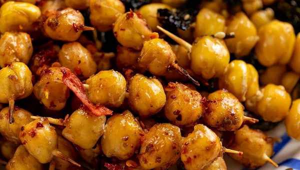 若想吃得更有夜宵摊那味儿,也可炒香花椒、辣椒丝,再与烤好的鹰嘴豆一同煸炒,最后放点辣椒面,太馋人了。