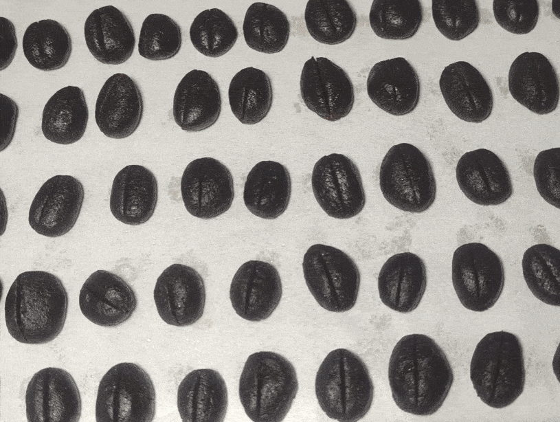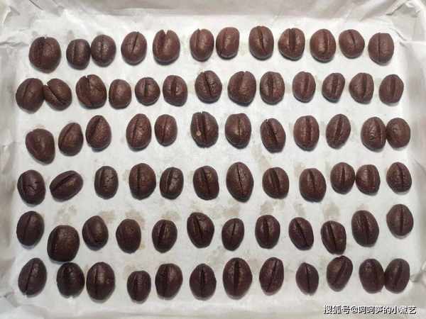 笋笋之前用咖啡粉和可可粉做饼干,香气非常诱人,所以咖啡渣同样也可以用呀。既然用咖啡渣来做曲奇饼干,就做个咖啡豆的造型吧,香味浓郁的很,除了大一些和咖啡豆还挺像的呀。为了达到效果已经尽量做小了,搓的笋笋手都要费了哈哈,不过真是好吃呀!