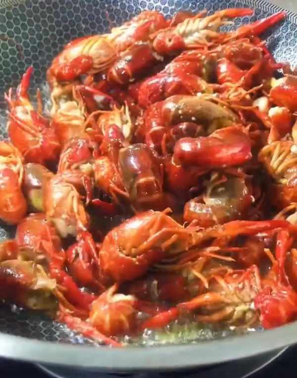 2.锅放少许底油,煸炒小龙虾至红色,倒出备用。