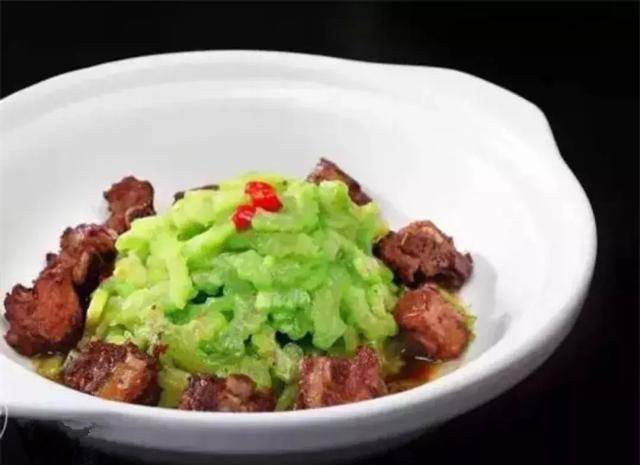 原料:苦瓜450克,排骨200克。乱花椒5克。盐5克,味精2克,鸡精3克,酱油3克,蒸鱼酱油1克,猪油70克。