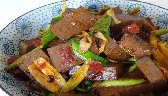 青蒜炒鸭血