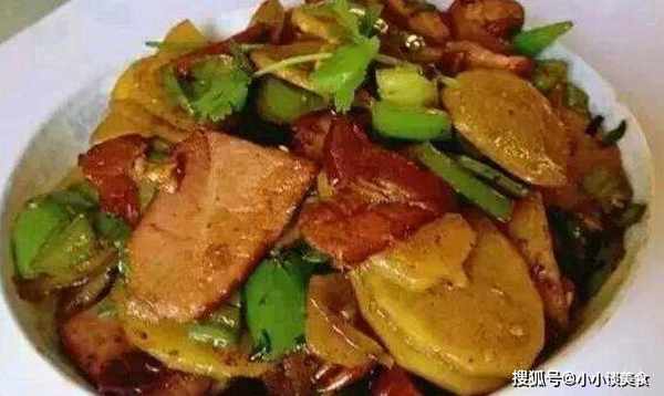 材料:培根、土豆、老抽、青椒、青蒜少许、盐1.腊肉蒸熟,去皮切薄片,土豆去皮切片,泡冷水。
