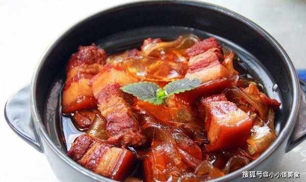 原料:猪肉1000克,粉丝1条(干),植物油2汤匙,红烧酱油,生抽2汤匙,料酒1汤匙,料酒2汤匙,葱10克,姜10克,丁香3瓣大蒜、花椒10粒、八角2粒、干辣椒2条、冰糖2粒、食盐2汤匙、食盐5克